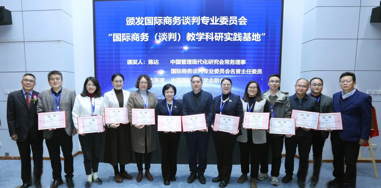 (张晓涛经理代表公司接受“国际商务(谈判)教学科研实践基地”证书)