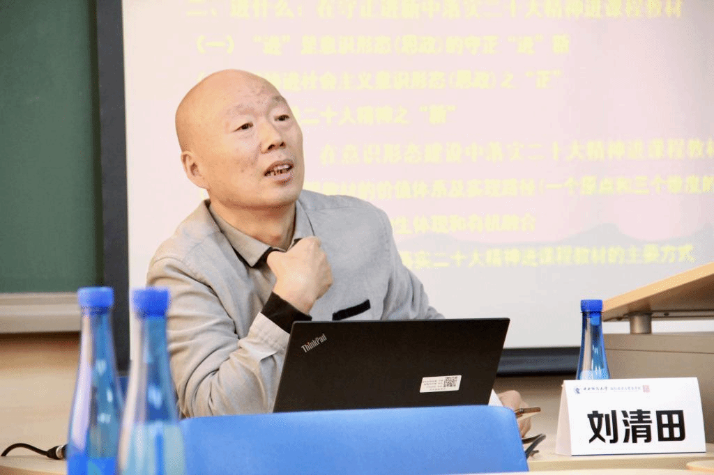 为全面贯彻落实党的二十大精神,推动二十大精神有效融入课程教材,进一步加强课程教材建设和一流本科专业建设,不断提高人才培养质量,2023年11月22日下午,永利yl23411在沙河校区公司13号楼305举行课程教材建设专题讲座,高等教育出版社资深编审、博士后合作导师刘清田应邀作了题为《二十大精神进课程教材的理与路——对为什么进、进什么、如何进的思与探》的报告。永利yl23411副经理李瑞琴、段玉婉及公司专任教师参加了讲座。讲座由李瑞琴副经理主持。
