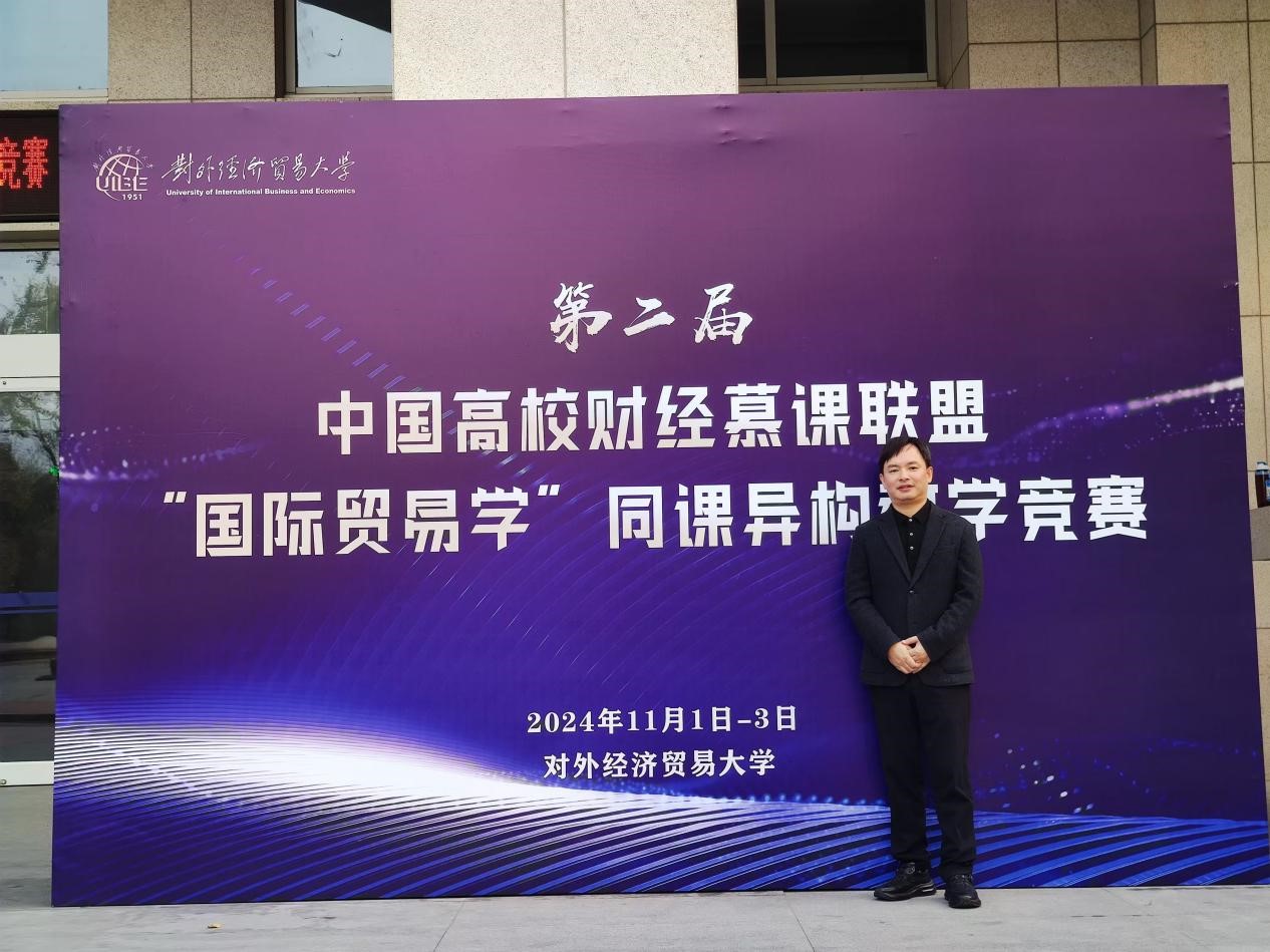 2024年11月2日至3日,第二届中国高校财经慕课联盟“国际贸易学”同课异构教学竞赛在对外经济贸易大学举行。此次教学竞赛以“数智赋能”为主题,探索打造智慧课程。公司符大海副教授代表《国际贸易学》课程团队参加本次赛事。在11月2日举行的复赛阶段,由全国25所财经类院校推荐的参赛选手同台竞技,共评选出8名教师进入决赛。公司符大海副教授以复赛成绩第一名出线后参加了11月3日举行的决赛,并最终获得此次教学竞赛一等奖。