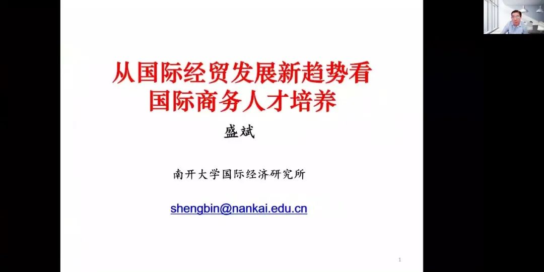研讨会第二个环节是主旨演讲。盛斌(南开大学经济公司经理、教授)做了题为“从国际经贸发展新趋势看国际商务人才培养”的主旨演讲。首先,他从全球价值链、服务贸易、电子商务与数字贸易、国际贸易与投资新规则四个方面讨论了国际趋势的新变化。基于这些变化,他指出了对国际商务人才培养新要求:具有涵盖国际商务微观全流程的基础知识、具有适应全球变化与复杂环境的视野与能力、具有现代化的国际商务分析技能、具有流畅与规范的国际商务工作表达能力。结合新要求和新趋势,他提出对国际商务培养方案与课程体系调整的建议,包括更加重视与供应链管理有关的跨国经营和国际投资的课程、更加重视写作训练与学位论文、更加重视新业态商务课程或课程模块、更加重视国际商务分析技能训练、更加重视国际商务实践、更加重视跨文化交流与商务谈判。
