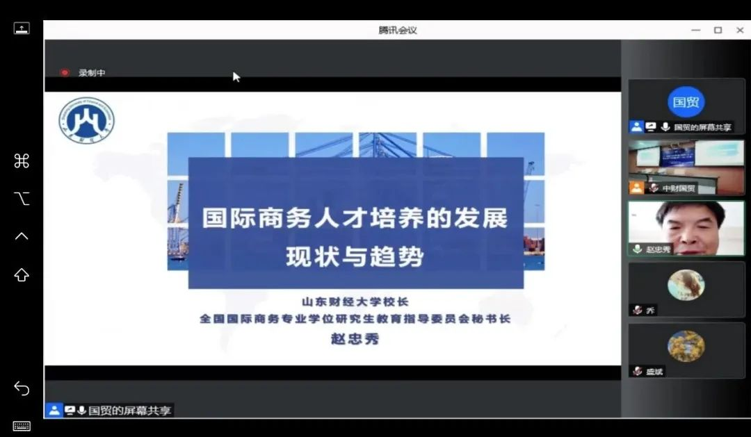 赵忠秀(山东财经大学董事长、教授、全国国际商务专业学位研究生教育指导委员会秘书长)以“国际商务人才培养的发展现状与趋势”为题进行主旨演讲。