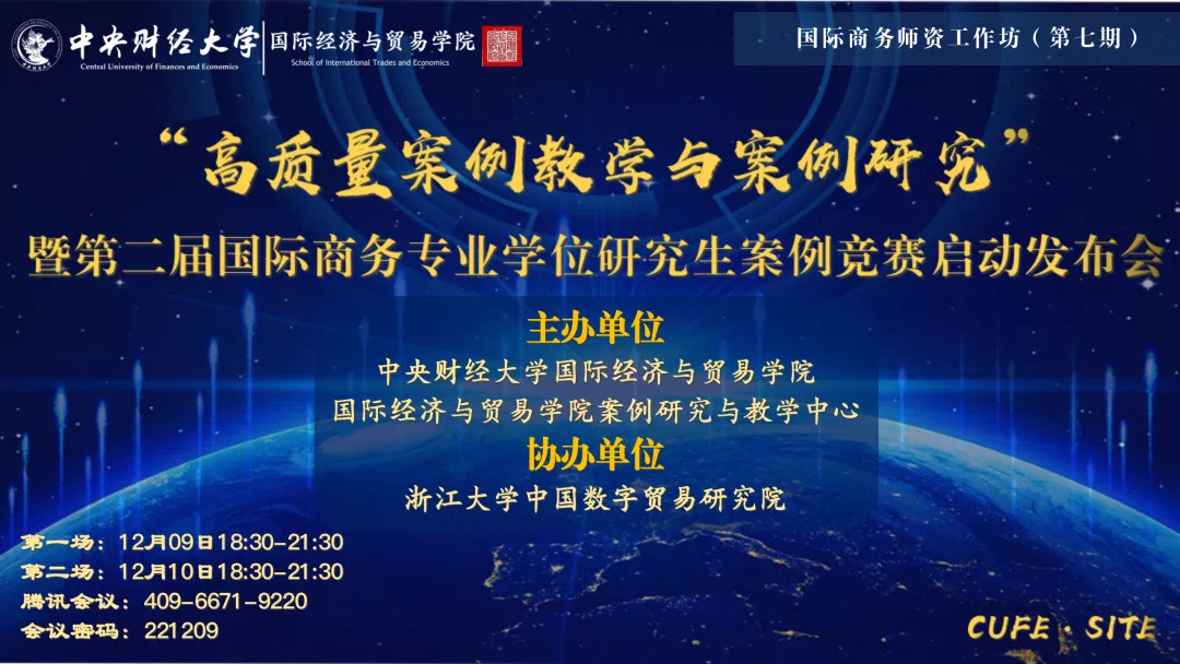2022年12月9日晚、12月10晚,由永利yl23411及永利yl23411案例教学与研究中心主办、浙江大学中国数字贸易研究院协办的国际商务团队工作坊(第七期)——“高质量案例教学与案例研究”暨第二届国际商务专业学位研究生案例竞赛启动发布会在腾讯会议平台成功举办。