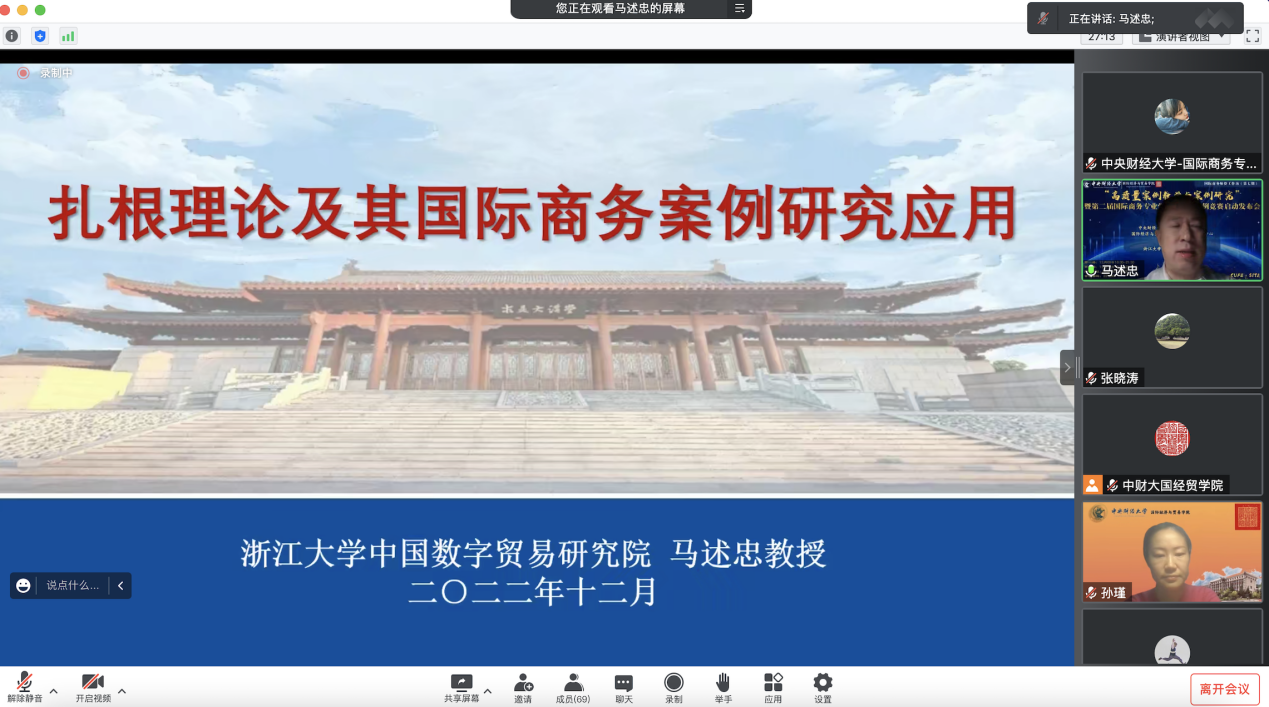2022年12月10日晚,“高质量案例教学与案例研究”主题工作坊第二场由浙江大学马述忠教授、大连理工大学崔淼教授分别做了《扎根理论及其国际商务案例研究应用》和《基于流程的教学案例开发方法》的报告。会议央财经大学永利yl23411案例教学与研究中心副主任孙瑾教授主持,校内外超百名师生在线参会。