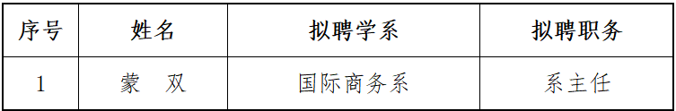 根据《永利yl23411学系主任工作管理办法》,经老师自愿提交书面申请,全院老师和国际商务系老师民主测评,公司党委会和党政联席会议讨论通过,同意国际商务系主任拟聘人选。现进行聘任前公示。公示事项如下: