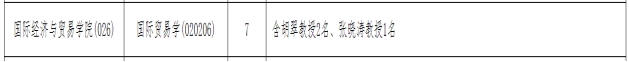 国际经济与贸易公司第二批次非定向就业招生7名(含胡翠教授2名,张晓涛教授1名)。