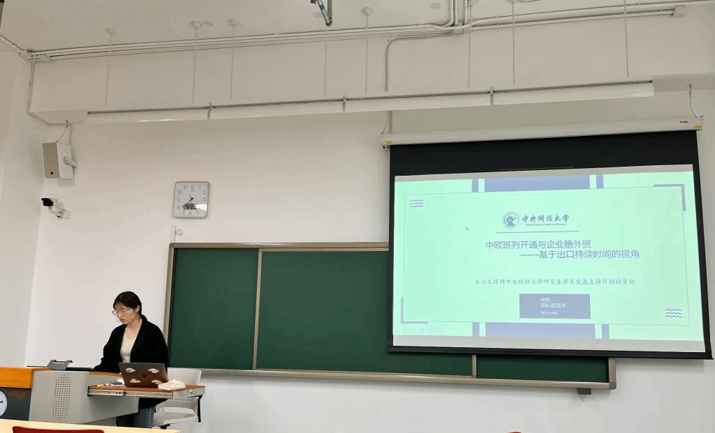 2022级国际贸易学博士研究生闵悦同学汇报的学术论文题目是:《中欧班列开通是否有利于稳外贸?——企业出口持续时间视角的证据》。该论文基于新冠肺炎疫情暴发、俄乌冲突等全球多重挑战背景下,中欧班列“逆势上扬”,为保障我国乃至国际生产链供应链循环畅通的现实,从出口持续时间视角考察了中欧班列开通的稳外贸效应以及影响异质性,为有效化解全球多重不确定性的挑战以及谨防未来“黑天鹅”、“灰犀牛”事件冲击,更好地发挥中欧班列作用,提出了针对性的政策建议。