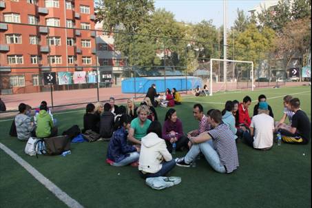 11月5日下午,来自丹麦Zealand Business College的员工和老师与公司10级国贸研究生在足球场开展了旨在“体验中国文化,促进汉语传播”的交流活动。丹麦师生一行15人,他们此次来公司是进行为期两周的游学活动,主要目的是为了体验中国文化,促进汉语学习。