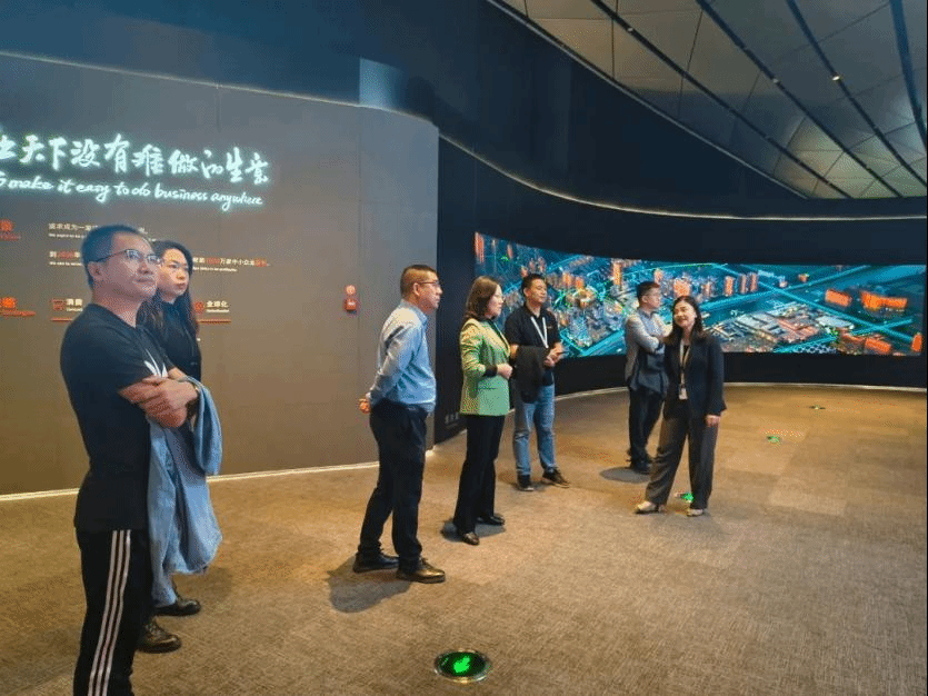 11月21日下午,公司一行走访了阿里巴巴集团总部。阿里巴巴国际数字商业集团公共事务总监蔡晓辉,阿里巴巴淘天集团1688公共事务总监朱亦丹出席了本次活动。公司一行参观了位于西溪园区的阿里总部9号馆展区,9号馆不仅是阿里巴巴的主题展览馆,也是整体反映中国互联网经济的展览馆,是阿里经济体的发展成就及未来蓝图的生动呈现。公司一行深入了解了阿里巴巴发展大事记、重要历程,以及阿里巴巴消费、云计算、黑科技、大数据、人工智能、公益扶贫、教育和农村项目、全球化战略,感受了全球最大互联网电商企业独具特色的创新基因。随后,双方在9号馆蝴蝶谷进行了座谈,总监蔡晓辉向公司一行介绍了阿里巴巴国际站的基本情况、历史发展、业务版块、经营模式等,详细介绍了阿里“6+1+N”组织变革模式,并对新架构下,阿里巴巴国际数字商业集团在提供全球领先的数字外贸服务方面的探索和成就。最后,蔡总介绍了阿里国际与高校合作及人才招聘情况。公司党委书记徐淼表示,通过本次阿里之行,了解了阿里在新零售模式和数字贸易方面的创新举措,启发我们“向外看”和“向前看”的重要性,期望未来双方在校企共同体建设方面取得新成果。