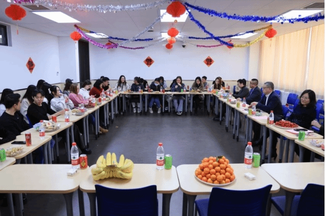 茶话会在生动感人的英文新春故事短片《话说中国节——春节》中徐徐拉开帷幕。“春节对中国人来说是新一年的开始,是中国最盛大的节日,在新旧交替的时刻陪在家人身边,是至关重要的仪式感。”一幕幕喜庆热闹的新春片段将中国传统节日——春节如画卷般呈现给与会师生,温暖和谐的气氛瞬间弥漫整个会场。