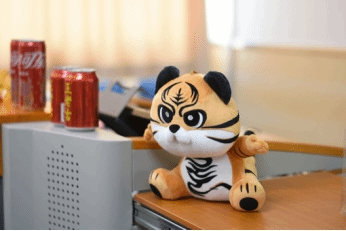 殚见洽闻展博渊。声声敲击,手手传递,贸贸虎在热闹的“击鼓传花”游戏中送去阵阵欢声。以赛促知,脑力比拼,惊喜抽奖,传统文化知识竞答环节异彩纷呈。