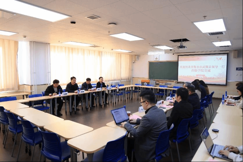 武强县政协主席郑杰斌对公司领导和教师们的热情接待表示感谢。他对武强县的地理位置、经济文化建设以及工业与农业发展状况进行了介绍,并强调了本县作为文化大县的独特地位。武强县的制造产业、音乐文旅产业等兴旺繁荣、技术先进。郑主席以乐器特色产业为例,表示在发展外向型经济中对国际经济贸易人才有迫切的需求,与公司的专业背景高度契合。此次访问旨在充分发挥校地双方的优势,推动校地合作共建机制,为促进产学研深度融合、培养更多高素质应用型人才、高质量发展地方经济注入新动力。他对双方合作的未来前景充满信心,并期待公司领导前往武强县实地考察,扩大合作空间。
