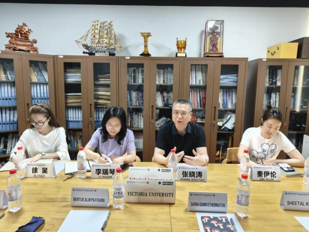 2024年6月5日上午,永利yl23411和澳大利亚维多利亚大学(Victoria University, VU)合作本科教育项目英语课程外教座谈会顺利召开。 永利yl23411经理兼中澳合作项目主任张晓涛、永利yl23411副经理兼中澳合作项目副主任李瑞琴、国际合作办公室主任、中澳合作项目协调员秦伊伦、中澳合作项目协调员徐昊,维多利亚大学英语课程外教Sarah Dawn Etherington、Aidan David Coen、Bertus Alwyn Fourie、Max Mccracken Kirkman、Sheetal Karan参加本次座谈会。