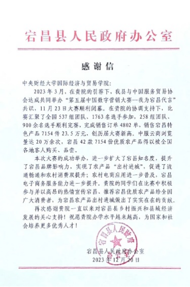 图:宕昌县人民政府感谢信