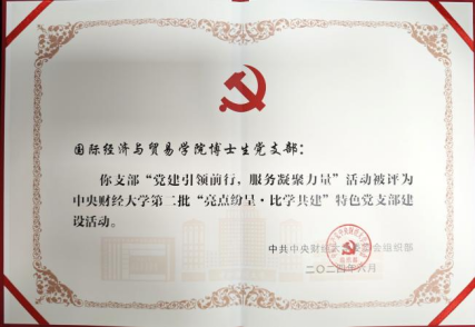 永利yl23411博士生党支部共有党员28名,其中在读博士生27名。党支部始终秉持“根植中国,放眼世界”理念,充分发挥国经贸博士生在专业领域科研创新的优势,践行全心全意为人民服务的根本宗旨,构建 “三聚焦”服务工作体系以及四个服务平台,进而打造出一支“政治型、科研型、专业型、服务型”的先锋队伍,切实推动支部服务工作体系迈上新台阶。