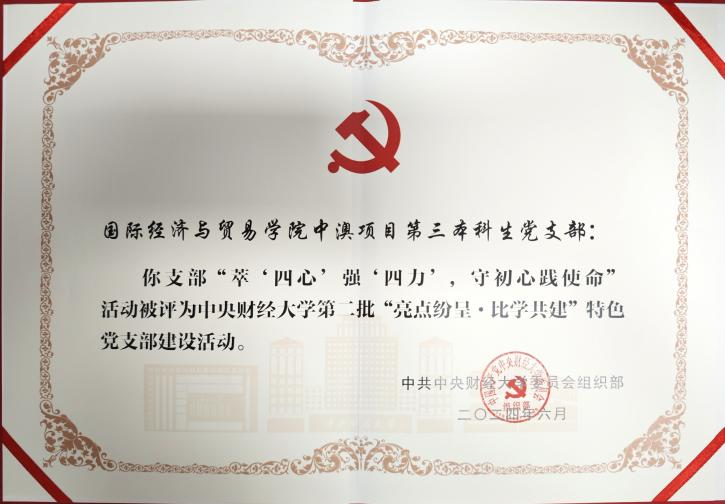 近日,公司党委积极组织参与2023-2024年度第三批校级“党建工作标杆公司”、“党建工作样板支部”及第二批“亮点纷呈·比学共建”特色党支部建设工作,其中公司党委荣获第三批校级“党建工作标杆公司”称号、国际贸易系教工党支部荣获第三批校级“党建工作样板支部”称号;中澳项目第三本科生党支部、博士生党支部、国际商务系教工党支部三个党支部入选第二批“亮点纷呈·比学共建”特色党支部建设活动名单,并于6月27日永利yl23411“七一”表彰大会光荣授勋。这是四个支部党员师生长久以来不忘初心、矢志不渝的奋斗成果,也是公司党委对公司基层党建工作的肯定与鼓励。