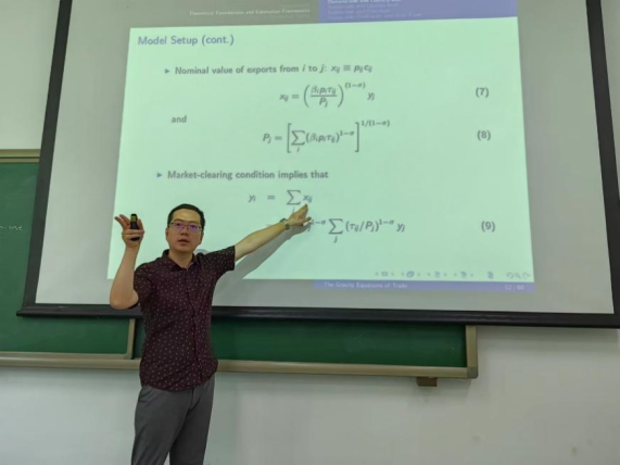 本专题由南开大学金威助理教授主讲。金老师以“Gravity Meets Stata: Theory and Application”为题授课,详细地讲述了国际贸易领域的经典模型——引力模型和高维固定效应面板泊松模型(PPML)。首先,金老师介绍了引力模型的概念、内涵及发展,用生动的的故事引入主题。接着,金老师主要讲述了引力模型发展过程中的四个主要模型框架,阐述了模型的考量纬度、重要假设以及变化与关联,强化了同学们对引力模型的理解深度。随后,他从实证的角度带领大家了解如何在Stata软件中构建引力模型,如何查找双边贸易成本、关税、法律渊源等相关数据,教给大家Stata软件中引力模型的常用代码,并针对如何设置固定效应、对标准误的调整估计等重点问题进行了讨论。最后,金老师围绕处理零值贸易的方法展开讲述,揭示了实证中的常见误区,指出应用PPML模型处理更为稳健,并介绍了如何在Stata软件中建立PPML模型及后续如何对方程求解。