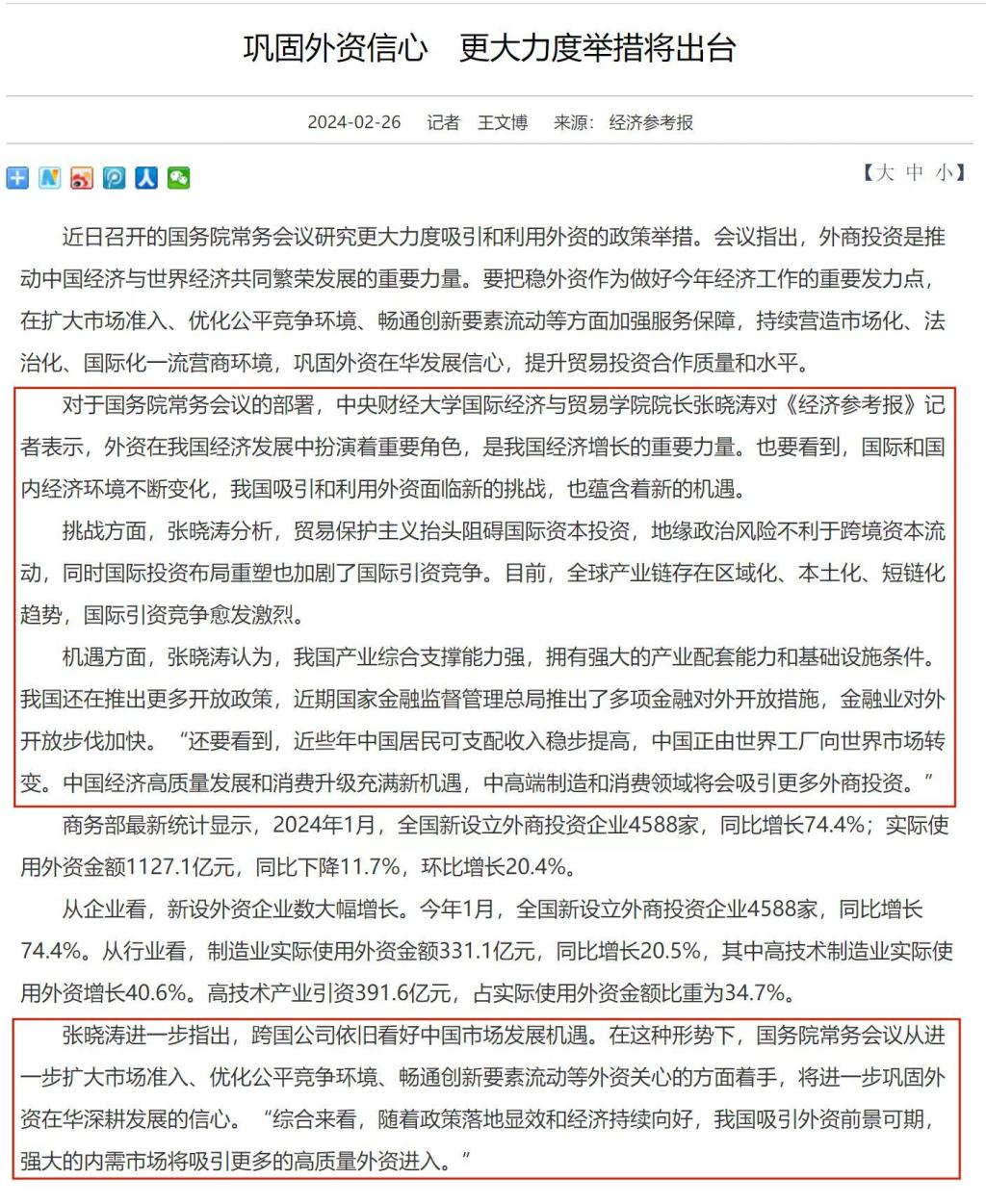近日,公司张晓涛教授就外资对我国的经济发展问题发表看法,相关内容刊登在2024年2月26日的《经济参考报》中。