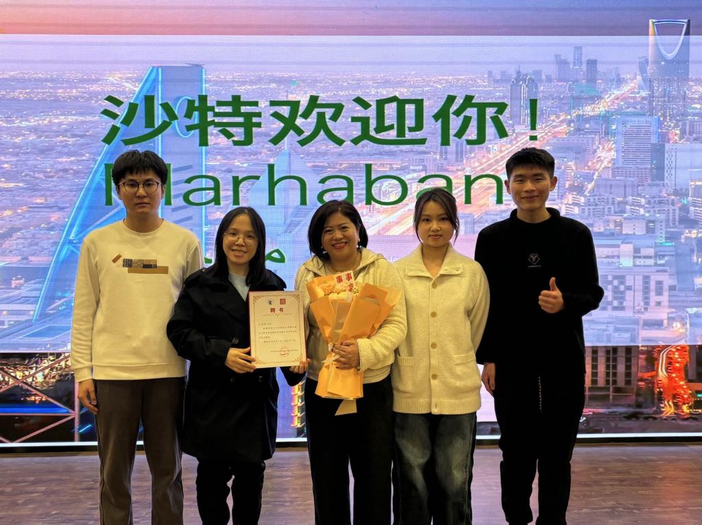 之后,万安凤副总裁从经济、社会文化与商业洞察的视角介绍了在沙特成功落地业务的经验与思考。她从“沙特市场概览、投资机会及大项目简介”、“关于沙特的一些迷思及业务落地须注意事项”、“如何成为一名优秀的国际商务人才”以及“利雅得的生活花絮分享”四个方面展开分享。她强调,国际商务人才应具备扎实的专业知识、开放的心态与跨文化沟通能力;构建本地化团队和建立深厚的关系网络是开拓中东市场的关键所在。面向未来,她呼吁有志于国际商务的员工和从业者主动走出国门,将自身发展与“一带一路”倡议紧密结合。只有以谦逊和专业态度拥抱不同文化,才能在全球化浪潮中把握机遇。她期待更多复合型人才加入国际舞台,共同推动中沙经济合作及全球化发展迈上新台阶。