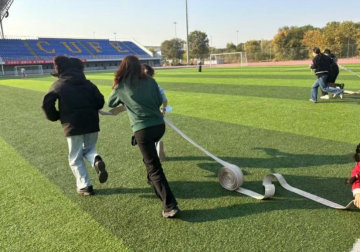 在比赛项目中,四人消防水带接龙赛成为全场焦点。队员们在裁判指令下,奋力甩出长长的水带,一环接一环,必须确保水带平直无结,快速完成消火栓对接。每一米的铺设都充满了紧张刺激,队友们互相鼓励,为了争取最短时间,有人更是爆发出了“百米冲刺”的速度。观众的欢呼声也此起彼伏,场面十分激烈。