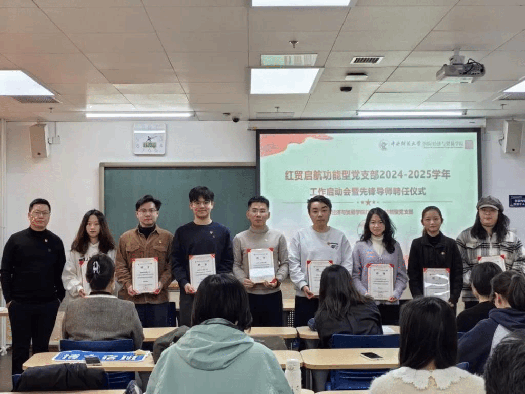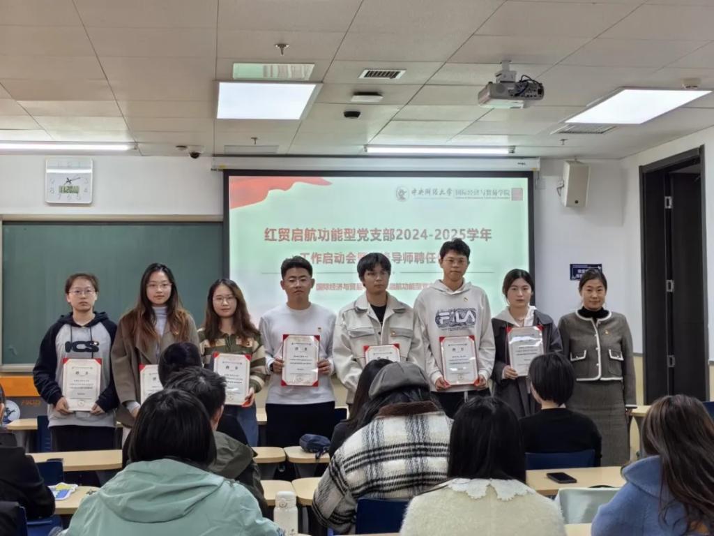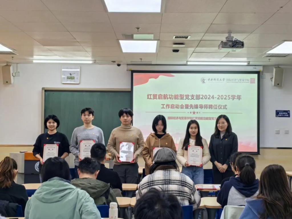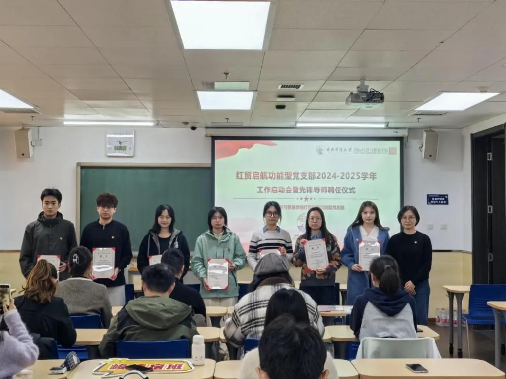 启动会现场举行了红贸启航功能型党支部先锋导师聘任仪式,与会领导及老师为先锋导师颁发了聘书。
