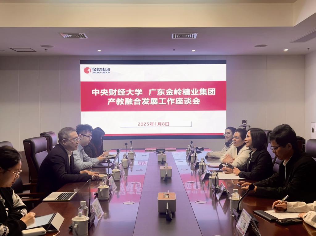 调研团队一行首先在金岭集团总部会议室进行座谈交流。金岭集团副总裁林森、金岭集团国际业务部副总经理罗瑜、金岭集团广东海谷科创投资股份有限公司运营部主管黄丽君、金岭集团湛江金通物业管理服务有限公司客服主管许婷等出席了本次座谈会。双方回顾校企合作以来取得的成果、经验,围绕高质量党建、实习实践、创新创业、企业人才培训、科学研究等领域进行了深入交流并达成深度合作意向。