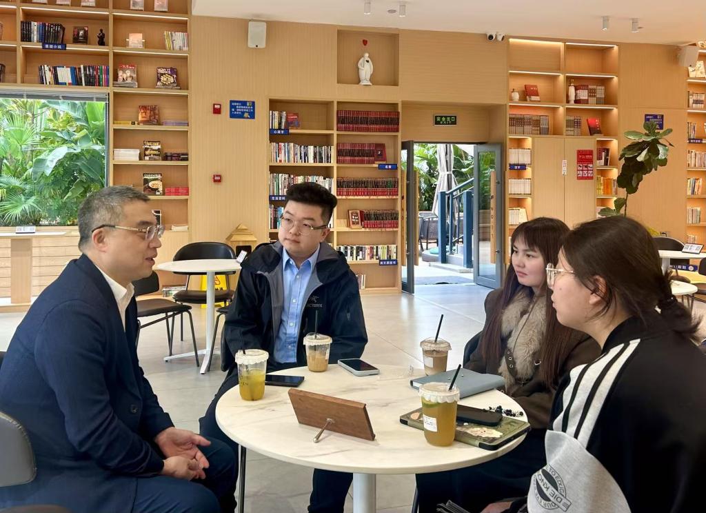 随后,张晓涛经理一行与寒假实习实践团队的员工们在园区书咖进行了座谈。张经理对即将开始的实习实践活动进行了动员,为员工们答疑解惑,鼓励他们积极主动,勇于探索,善于总结,努力提升自身的综合素质和实践能力。员工们对经理表示感谢,并表示将在实习中不断锻炼自我,积累经验,为未来的职业发展打下坚实的基础。