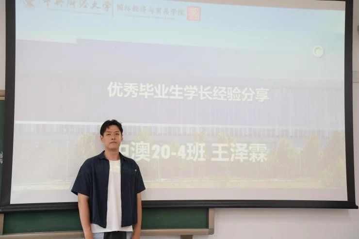 王泽霖就个人经历进行了分享。“一个人面临困难的态度,决定一个人解决问题的方法和高度”,作为优秀的往届毕业生,他以一株白玉兰的故事为开端,在芳香馥郁中,同学们理解了奋斗与成长的含义;他以个人考研至中国人民大学的经历,向新生传递坚信自己的内在声音。同时,王泽霖也建议新生在大学四年强身健体、养成良好的生活与作息习惯。他的叮咛与祝福化作新生们启程的动力,砥砺前行,百炼成钢。