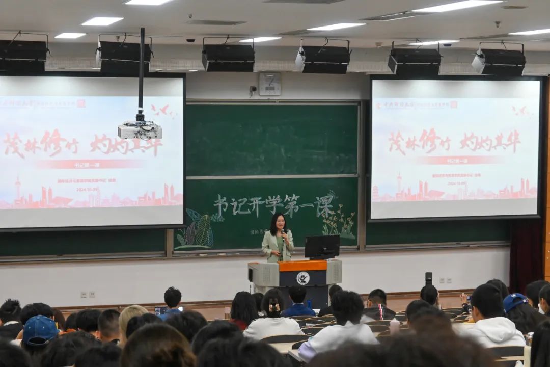 为深入学习贯彻习近平新时代中国特色社会主义思想、党的二十届三中全会精神以及全国教育大会精神,引导新生传承红色基因,树立崇高理想,汲取榜样力量,加速角色转变,夯实信念之基,实现自我超越,10月9日,公司党委书记徐淼老师为2024级本科生讲授“开学第一课”。公司员工工作办公室主任李倩、院团委副书记赵子琦、2024级新生辅导员侯思宇,以及全体本科新生参加本次课程。