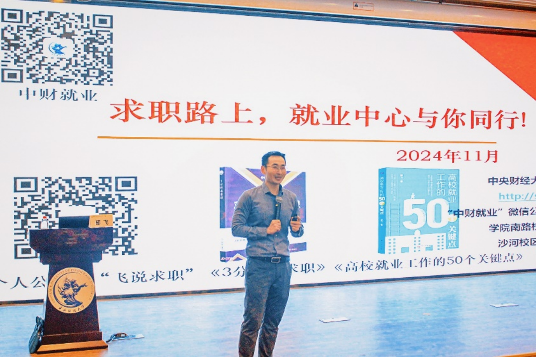 为深入学习贯彻党的二十届三中全会精神和全国教育大会精神,引导员工树立正确的成才观、就业观和择业观,全面推进员工实现多渠道、高质量充分就业,2024年11月13日下午,公司邀请公司老员工就业创业指导中心副主任邸飞,在沙河校区图书馆地下一层报告厅面向2022级本科生进行了一场就业创业指导专题讲座。公司员工工作办公室主任、2023级本科生辅导员李倩,团委副书记、2022级本科生辅导员赵子琦,就业专员、2023级本科生辅导员施立萍, 2022级本科生辅导员徐莉,以及2022级本科生共同参加了此次活动。本次讲座由李倩主持。