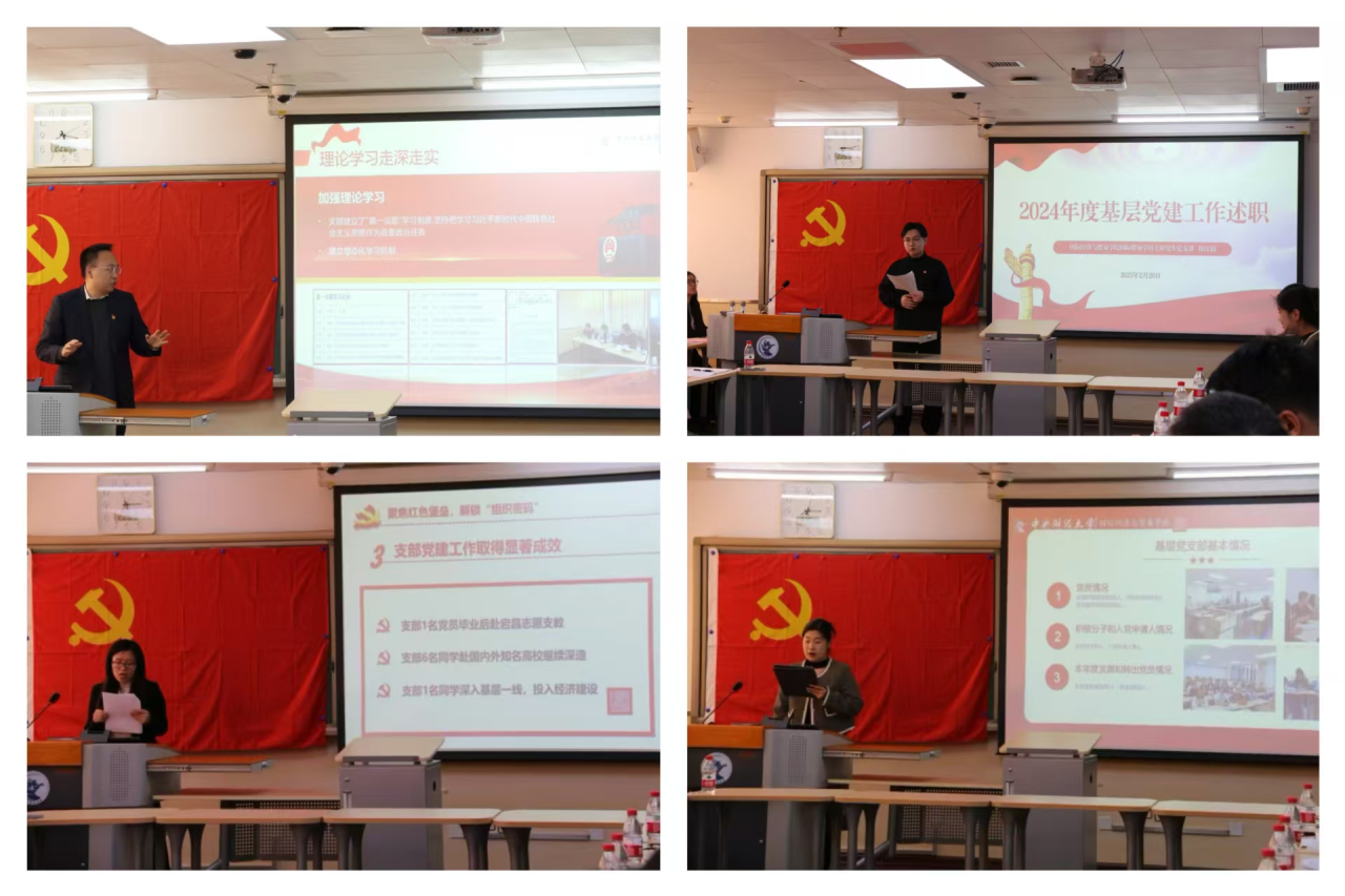 国际贸易系教工党支部、国际商务系教工党支部、博士生党支部、国际商务专业硕士研究生党支部、中澳项目第二本科生党支部、中澳项目第三本科生党支部以及国际商务和贸易经济专业本科生党支部等7位党支部书记进行了书面述职。在书面述职汇报中,7位党支部书记就筑牢信仰根基、提升理论素养、提高队伍素质、创新学习形式、打造支部特色等方面对支部2024年党建工作进行了系统性的回顾与总结,同时针对工作中存在的短板提出了切实可行的改进措施。