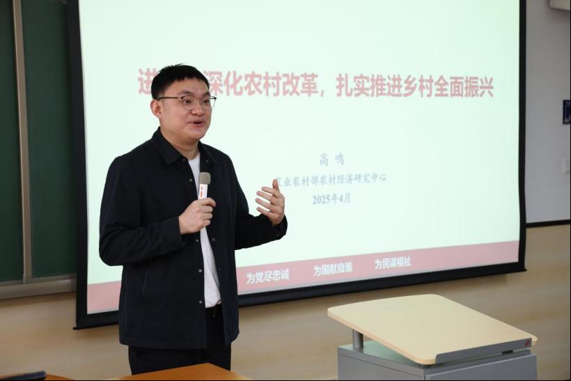 讲座中,高鸣副处长围绕2025年中央一号文件“深化农村改革”和“推进乡村全面振兴”的核心主线,结合最新政策、典型案例和调研数据,做了全面系统的解读。他指出,今年的一号文件具有总书记亲自谋划、关键节点部署、改革信号强烈、发展指向清晰、工作要求务实、内容更有温度等六大特点,文件共提出30条重点举措,涵盖六大领域改革任务,充分体现出党中央对“三农”问题的高度重视和战略定力。
