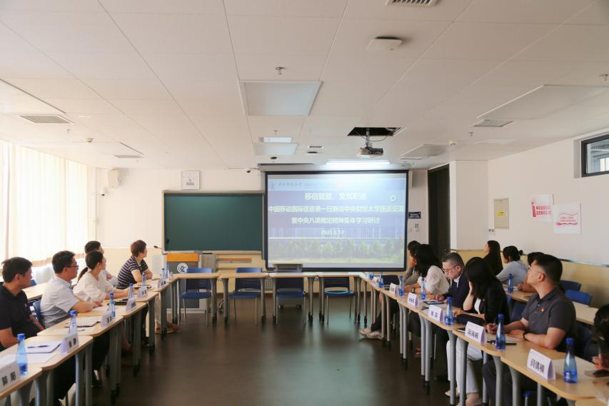 为全面贯彻落实中央八项规定精神,落实专题学习教育要求,响应高校就业工作部署,深化产教融合,2025年6月17日上午,中国移动国际信息港企业代表到访公司进行合作交流。公司经理张晓涛、党委书记徐淼携15名师生代表热情接待。座谈会由公司副经理段玉婉教授主持,双方围绕未来合作方向开展深度交流,并联合开展中央八项规定精神专题学习,共探发展新路径。