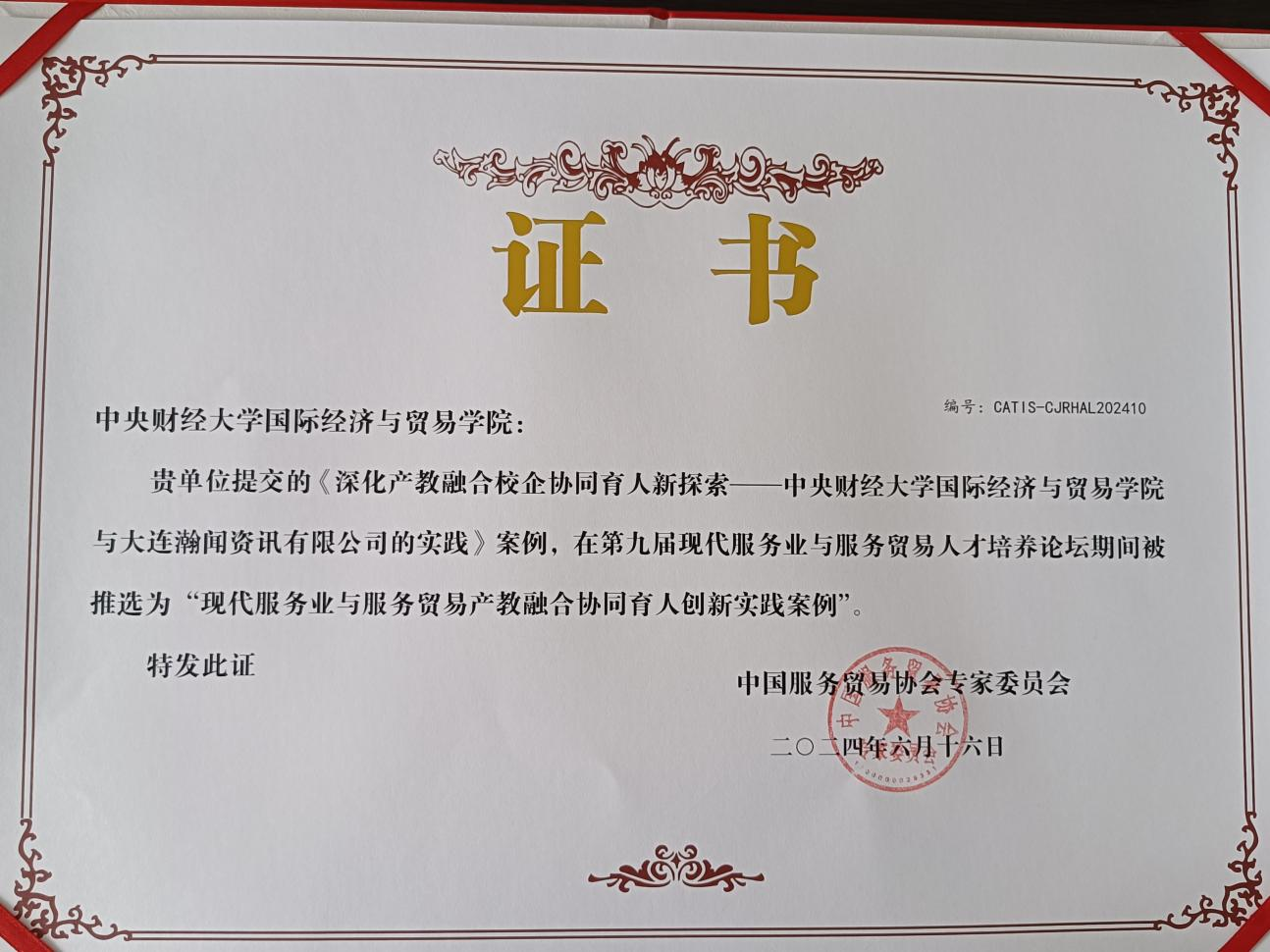 基于此,公司在产教融合校企协同育人的创新的实践形成的成果《深化产教融合校企协同育人新探索——永利yl23411与大连瀚闻资讯有限公司的实践》案例在第九届现代服务业与服务贸易人才培养论坛推选为“现代服务业与服务贸易产教融合协同育人创新实践案例”,《推进产教深度融合,助力新质生产力人才培养》获第九届现代服务业与服务贸易人才培养论坛暨第二届现代服务业与服务贸易公司产品成果二等奖,标志着校企协同模式获行业权威认可。