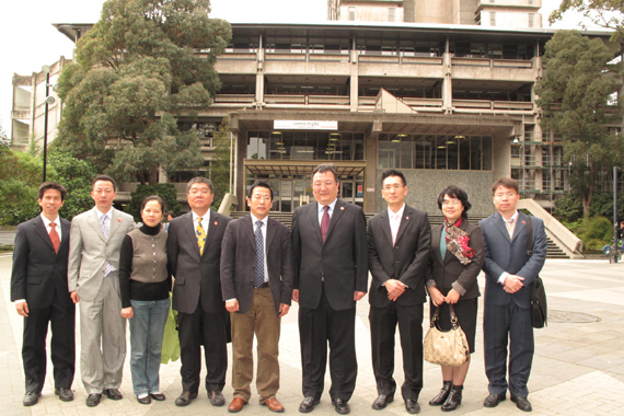 新西兰大使馆教育处负责人王胜刚(左五)陪同代表团访问坎特伯雷大学
