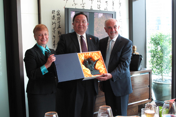 胡书记与维多利亚大公司董事会主席Pappas(右)和董事长Harman(左)互赠公司礼品
