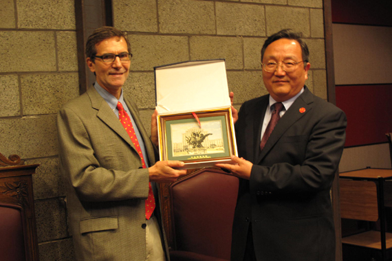 胡书记赠送坎特伯雷大学副董事长Angerilli礼物