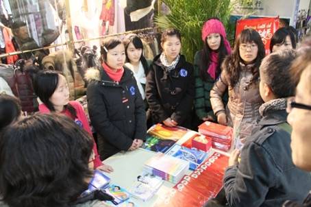 活动当天,同学们不畏严寒于下午1点提前到三里屯3.3服饰大厦和沃尔玛山姆会员店,经过瓷娃娃协会相关负责人对活动的的简短介绍与培训,2点左右同学们便开始了贺卡义卖活动。冬日的寒冷挡不住同学们心中的热情,虽然义卖活动面临一定的困难,但通过各位同学的耐心讲解和真诚推广,义卖活动于晚8点钟圆满结束,共筹集善款3746元,其中捐款715元。