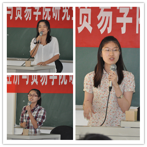 公司2011级研究生代表王萌、侯佳、郑雅洁代表老生参加了此次研究生经验交流。国际商务硕士王萌同学由信息公司跨专业保送至永利yl23411,她结合自身跨学科的学习背景,强调制定有效计划并行动的重要性。她表示,学习一定要注重平时的积累工作,汲取多元化知识,她同时希望学弟学妹们注重英语的学习,抓住实习机会,努力提高自己的职业技能。她还建议学弟学妹们培养自己的兴趣,参加《哈佛商业评论》分析大赛、挑战杯等相关活动,在实战中充实自我。侯佳是国际贸易学硕博连读优秀员工,她认为每一位同学首先都要端正学习态度,认真对待学习和学术研究,传授了自己写文献综述的经验。郑雅洁则系统地为2012级研究生讲述了她的研究心得。她认为做研究首先要具备较强的心理素质。其次,需要储备一些必备期刊数据库,并进行有效地数据收集,注重实证研究和理论探索,深化课程学习。