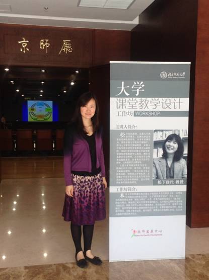 《大学课堂教学设计》项目由北京师范大学教师发展中心于2014年5月21日-23日在京举办,邀请了日本京都大学松下佳代教授对于大学课堂教学设计的理念与方法进行讲解,松下佳代教授介绍了日本老员工的就业问题与评价体系,针对大学课堂设计介绍了现代教学方法,提出培养员工发现问题的“十字模型”,项目学员根据培训模拟教学汇报,孙瑾老师顺利获得结业证书。