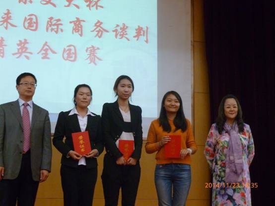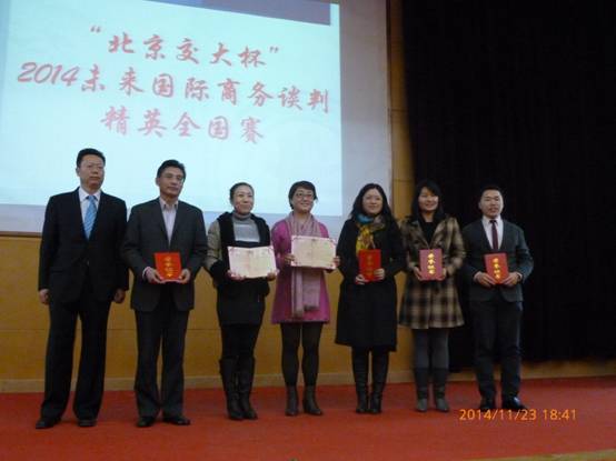 11月22日~23日,永利yl23411关婷元、徐熙平、赵治翔、赵梦媛、刘畅、陈竹等6位同学,在指导老师霍达老师的带领下,参加了在北京交通大学举行的2014年未来国际商务谈判精英全国赛并荣获 “一等奖”。同时,霍达老师在此次比赛中荣获“优秀指导奖”,关婷元同学在比赛中荣获“最佳谈判手”称号。