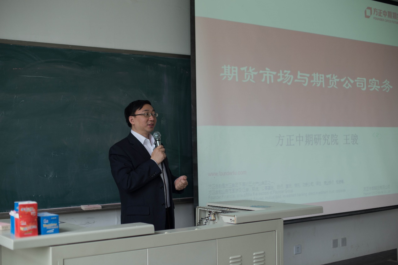 2015年4月23日上午,方正中期期货有限公司研究院王骏经理,牛秋乐分析师应邀在沙河东区主教210为公司进行了题为“期货市场与期权”的讲座,讲座由永利yl23411国际商务系主任霍达主持,沈琪副教授担任评论人。