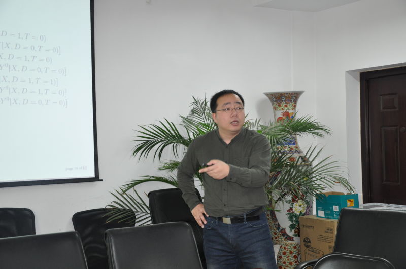 紧接着,中国人民大学经济公司助理教授江艇老师做了题为“DID方法的新进展”的讲座。江老师首先介绍了定义因果关系的潜在结果框架以及进行参数识别的重要假设。其次,江老师结合经典文献详细说明了DID方法的工作原理,包括参数识别、估计、敏感性分析及该方法可能存在的威胁。最后,江老师向大家详细介绍了DID方法的最新进展,包括非线性DID、Fuzzy DID和断点差分方法等。
