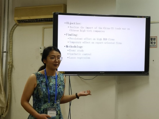 公司林发勤老师、李兵老师、俞脱脱老师和刘韬老师分别作了题为“Corruption and Exporting: Does Firm Size Matter?”“Product Heterogeneous Effects of Economic Policy Uncertainty on Trade: Big Data Context Analysis Based on Chinese Newspapers”“Is the China-US trade war jeopardizing Made in China”“Trade, Finance and International Currency”的学术报告,受到与会学者的广泛关注和肯定。