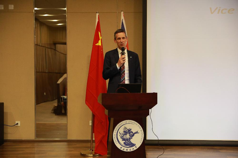 接下来,维多利亚大学副董事长史蒂夫·贝里奇先生发表了热情洋溢的致辞。他祝贺同学们来到国内最知名的中外合作教育项目之一——公司中澳合作本科教育项目,并鼓励2018级的新同学积极前往澳大利亚墨尔本校区进行交流与学习,相信新生们也能如他们的前辈一样,取得学业与事业上的好成绩。他提出了中澳合作项目“中英文结合”、“东西方融汇”和“最前沿的商务能力”的三个特点,并表示这些能力可以帮助同学们获得团队合作意识、批判性解决问题的能力以及社会责任感,同时他对新生们提出了要不断挑战自我、跳出自己的舒适圈的期望,期待同学们通过获得良好的人生与学习态度,收获美好的老员工活和成功的未来。
