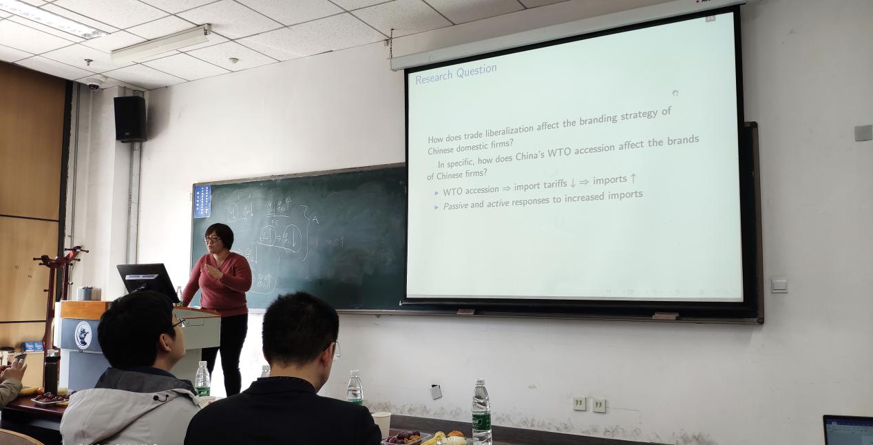 来自对外经济贸易大学的荆然副教授向大家展示了最新研究“Trade Liberalization and Domestic Brands: Evidence from China’s Accession to the WTO”。文章考察了贸易自由化对本土企业商标注册行为的影响,并发现关税下降幅度较大的行业中,企业会放弃更多商标,同时又申请更多商标,大企业申请的商标更多,并且新申请的商标主要是企业的非主打产品,与以往研究相比,企业面临贸易自由化的商标申请行为与产品选择行为有很大不同。