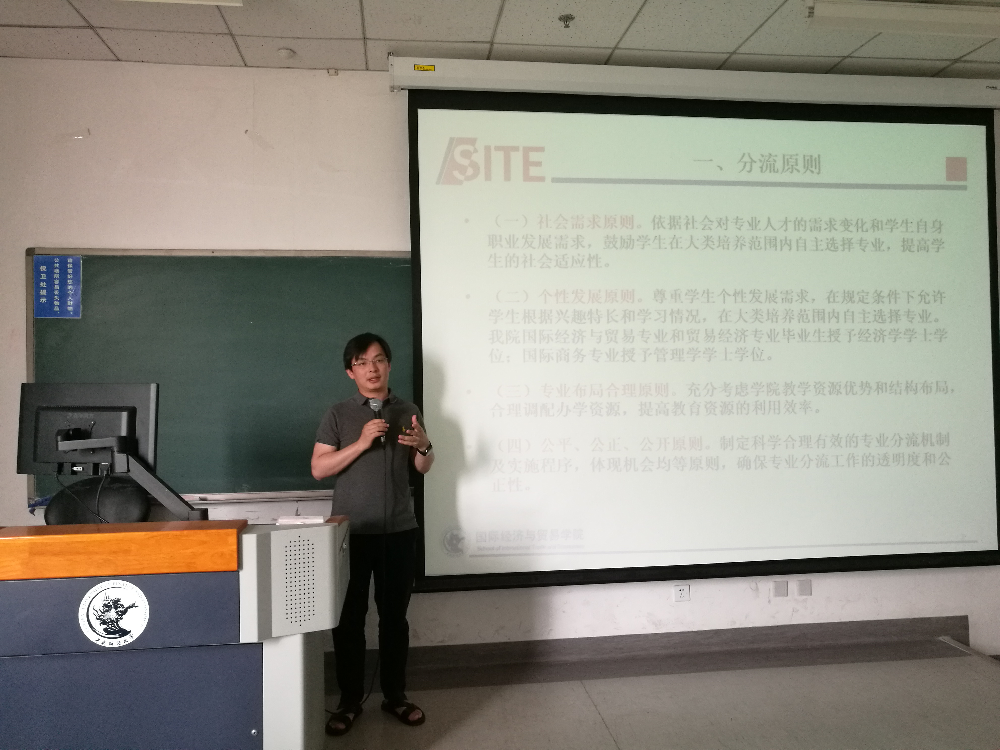6月20日上午,永利yl23411在沙河校区主教210教室举行了2018级大类招生员工专业分流宣讲会,对员工开展了专业分流动员和说明。永利yl23411副经理符大海副教授,公司党委副书记李瑞琴教授,国际贸易系系主任张艳副教授、国际商务系系主任霍达副教授、贸易经济系纪珽老师及其他相关老师出席宣讲会,会议由符大海副经理主持,2018级经济与贸易类全体本科生参加了会议。