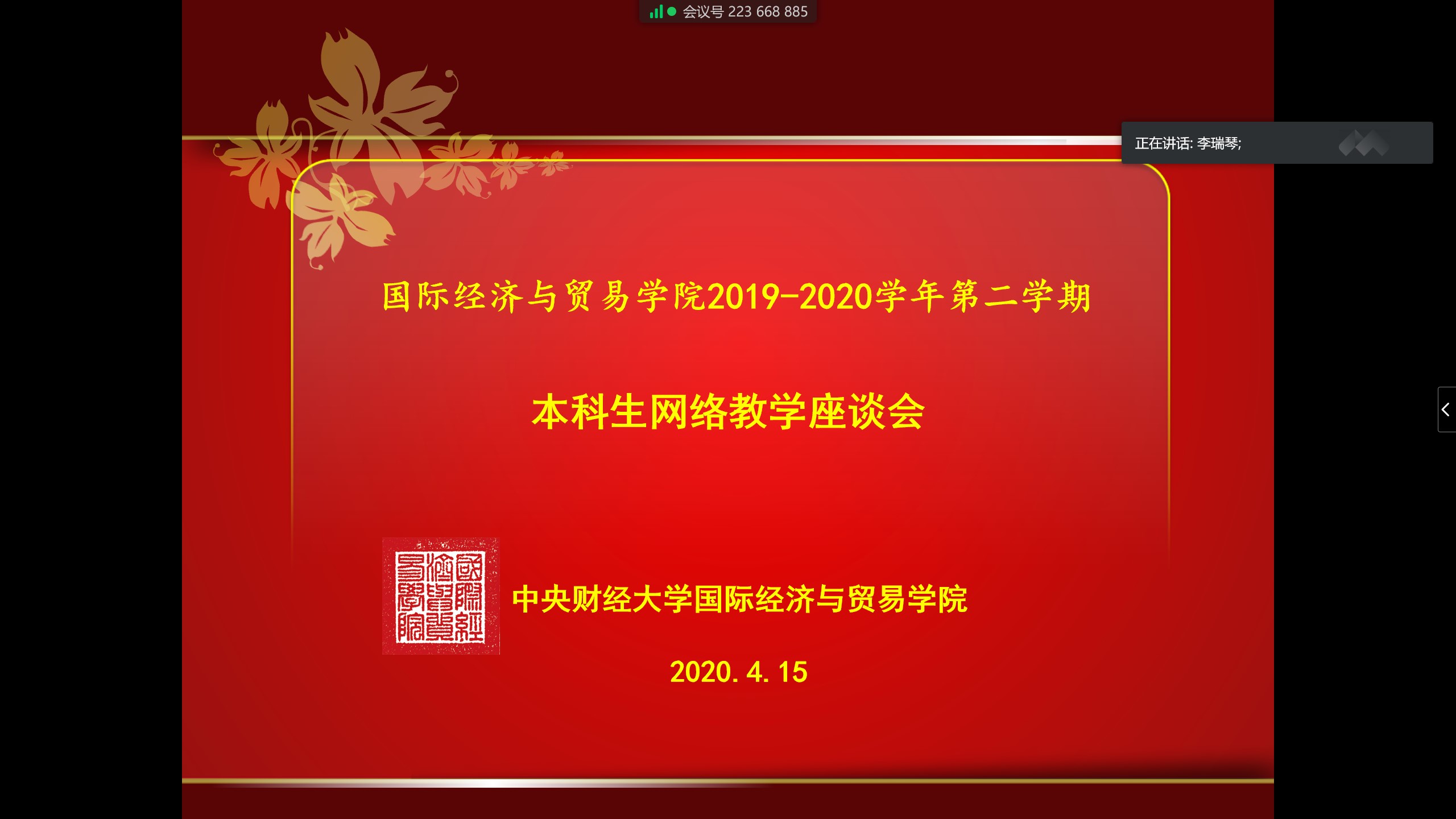 李瑞琴副经理首先介绍会议主题,她表示疫情期间,公司高度重视网络教学质量,关心员工学习情况。现本学期教学时间已过半,由于不能和大家见面,公司采用网络座谈会的方式,就网络教学的各个方面,向同学们展开了解,搜集同学们在本科教学方面的意见与建议,从而进一步完善中澳项目网络教学,提高教学质量。