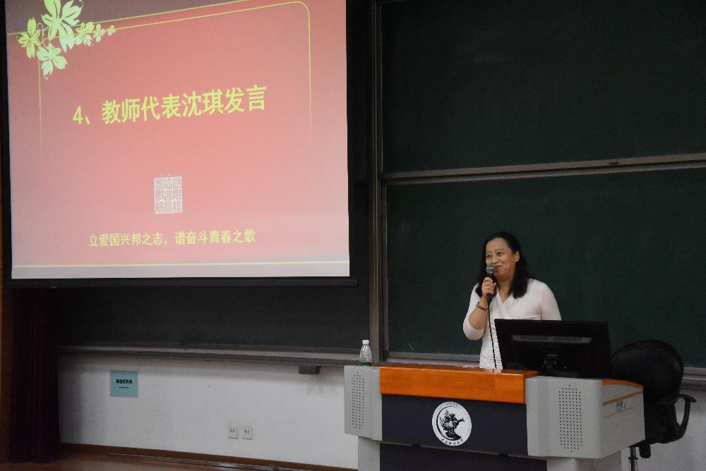 沈琪老师希望同学们在老员工活中珍惜时光,终身学习,与师长、同学多沟通,通过独立思考成为最好的自己,尊重生命,百折不挠。她激励同学们:“凡是不能打败我们的,终将使我们更强大”,并祝同学们学业顺利,早日成为栋梁之才。