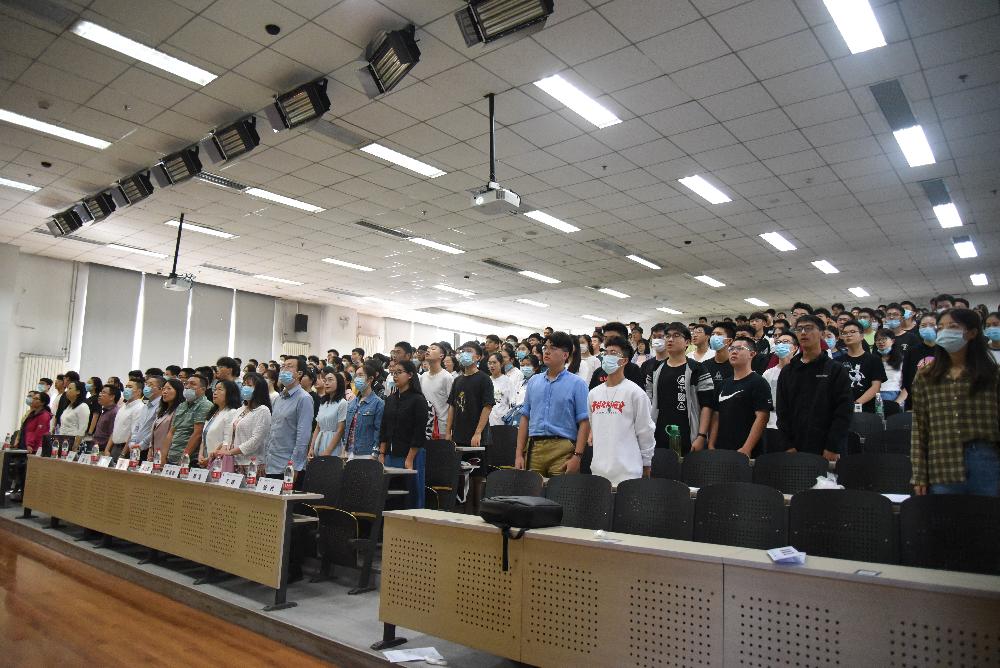 开学典礼在全体师生起立共唱的国歌声中拉开帷幕。