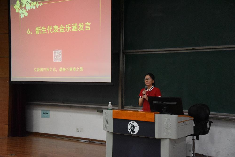 随后,教师代表沈琪老师、在校生代表于可心同学和新生代表金乐涵同学依次进行发言。